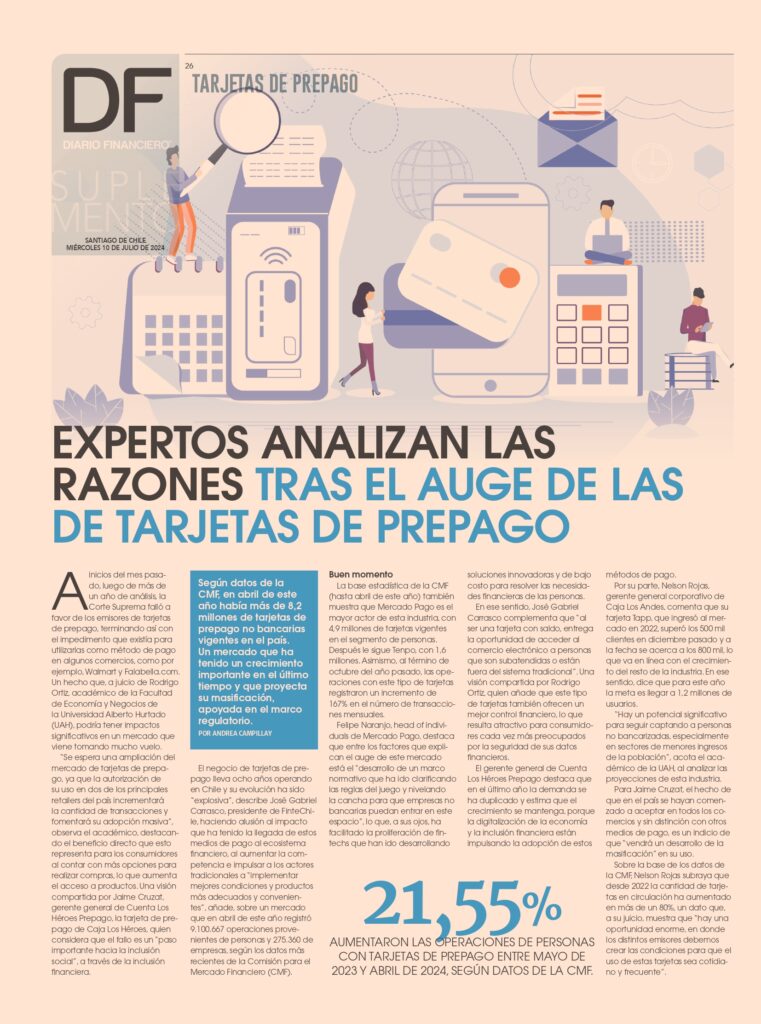 Rodrigo OrtÃz, investigador asociado de Alfalytics y académico de la Facultad de EconomÃa y Negocios de la Universidad Alberto Hurtado (UAH), fue consultado por Diario Financiero sobre el reciente fallo de la Corte Suprema sobre las tarjetas de prepago en Chile. Este fallo, que levantó las restricciones que impedÃan el uso de estas tarjetas en grandes comercios como Walmart y Falabella, podrÃa significar un importante cambio en el panorama financiero del paÃs.